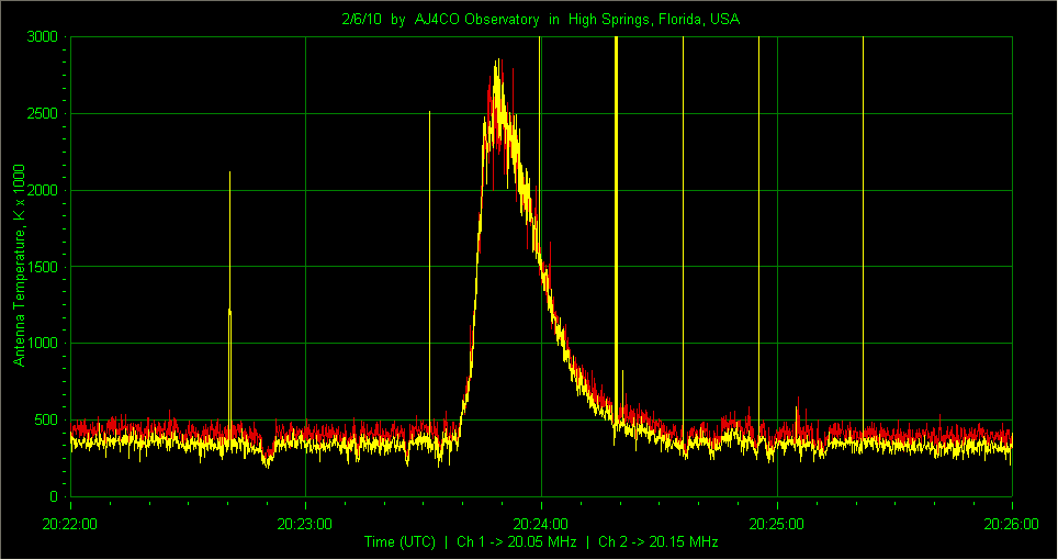 Here is the raw data from the radio telescopes along with processed data and processing output such as spectrograms and strip charts. If you use any of this material—you are free to do so—please credit Dave Typinski, AJ4CO Observatory.