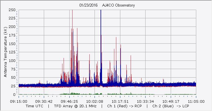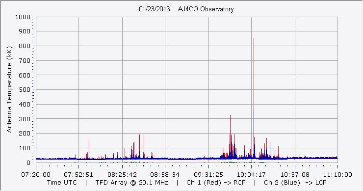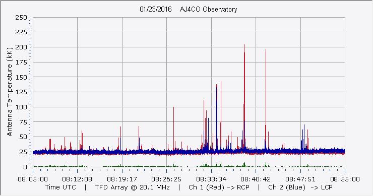 Here is the raw data from the radio telescopes along with processed data and processing output such as spectrograms and strip charts. If you use any of this material—you are free to do so—please credit Dave Typinski, AJ4CO Observatory.
