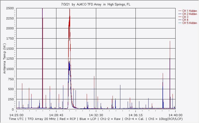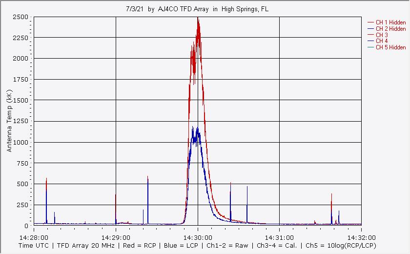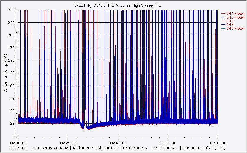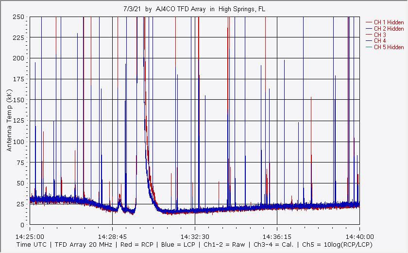 Here is the raw data from the radio telescopes along with processed data and processing output such as spectrograms and strip charts. If you use any of this material—you are free to do so—please credit Dave Typinski, AJ4CO Observatory.