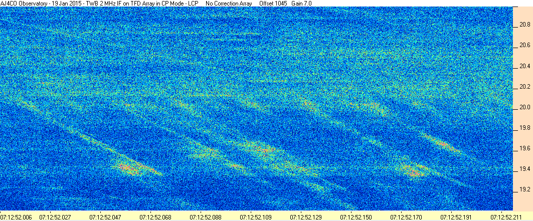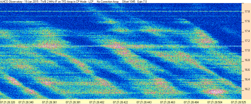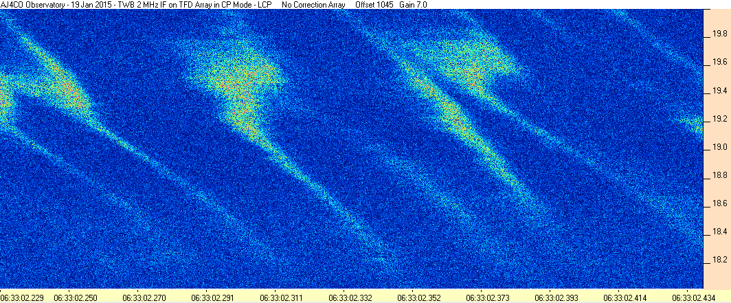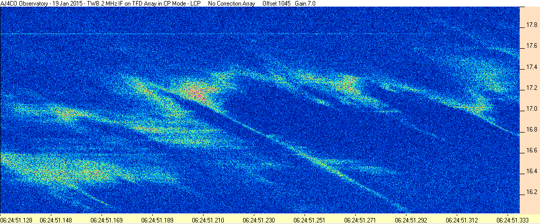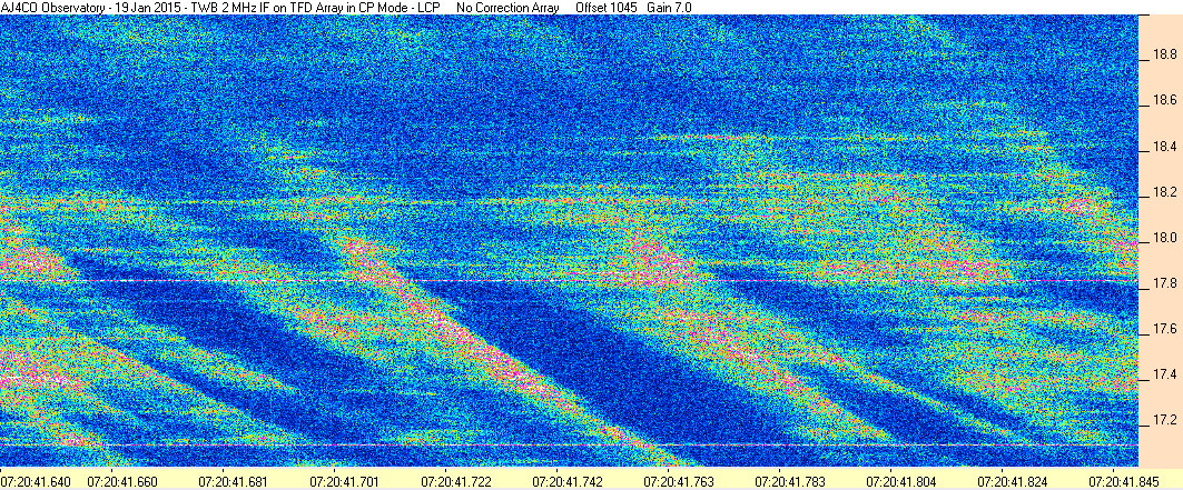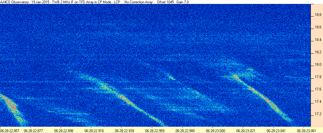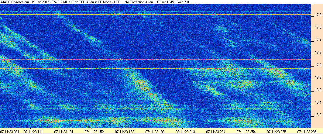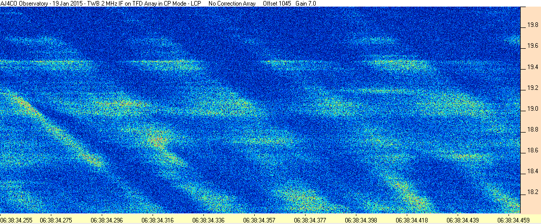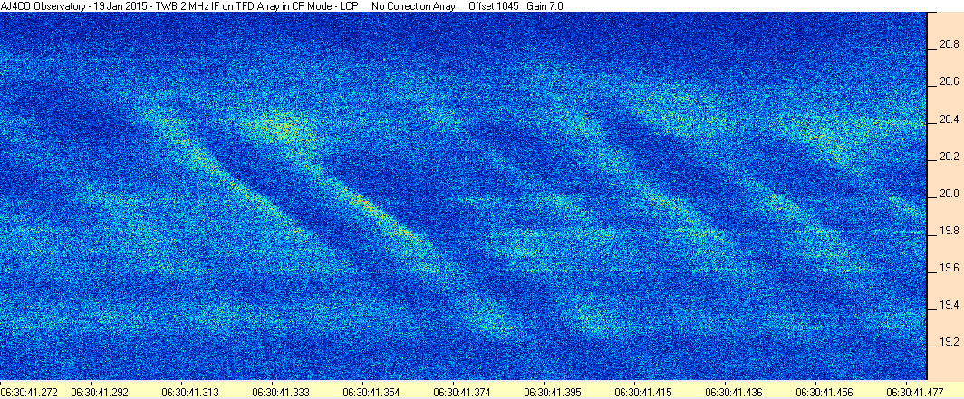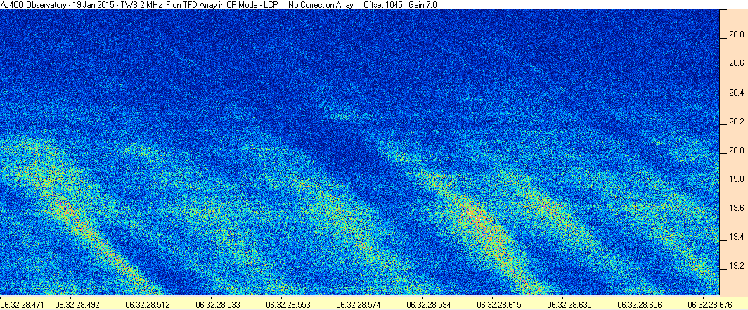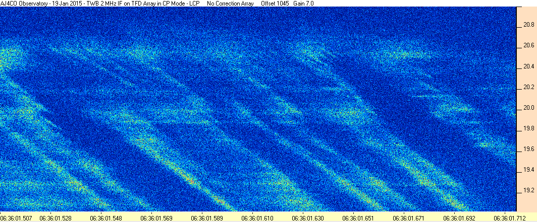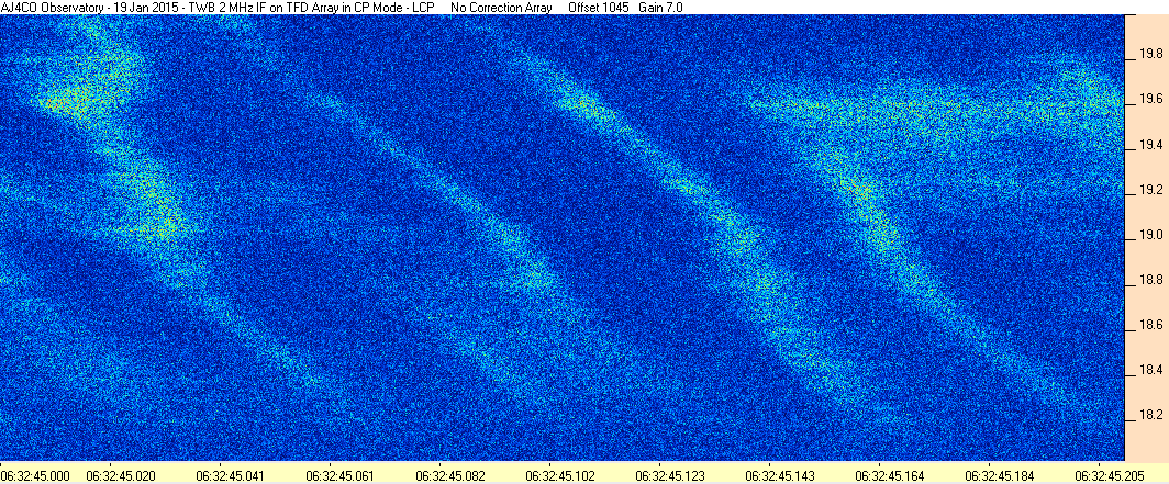 Here is the raw data from the radio telescopes along with processed data and processing output such as spectrograms and strip charts. If you use any of this material—you are free to do so—please credit Dave Typinski, AJ4CO Observatory.