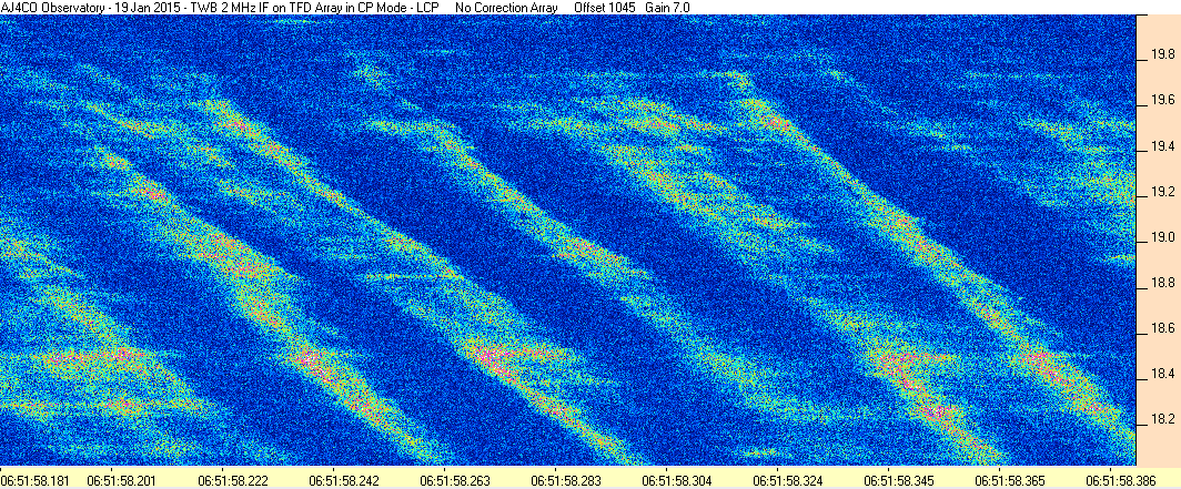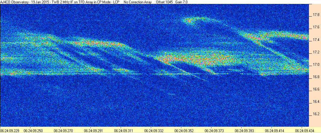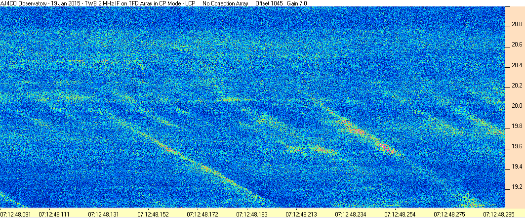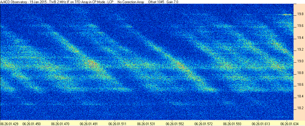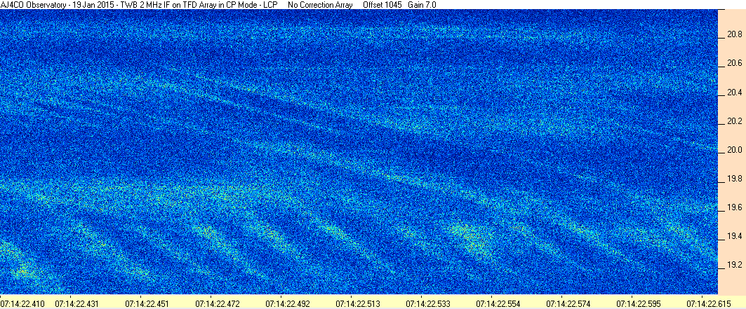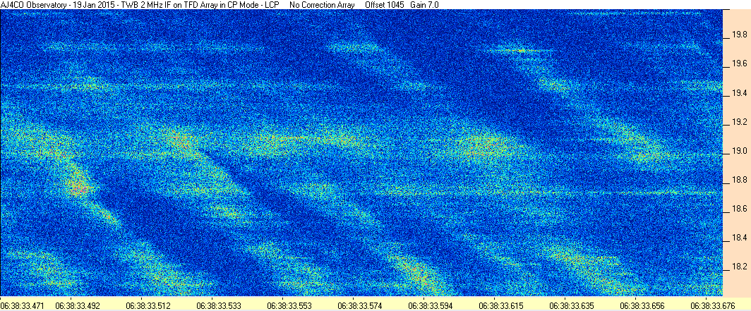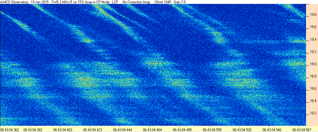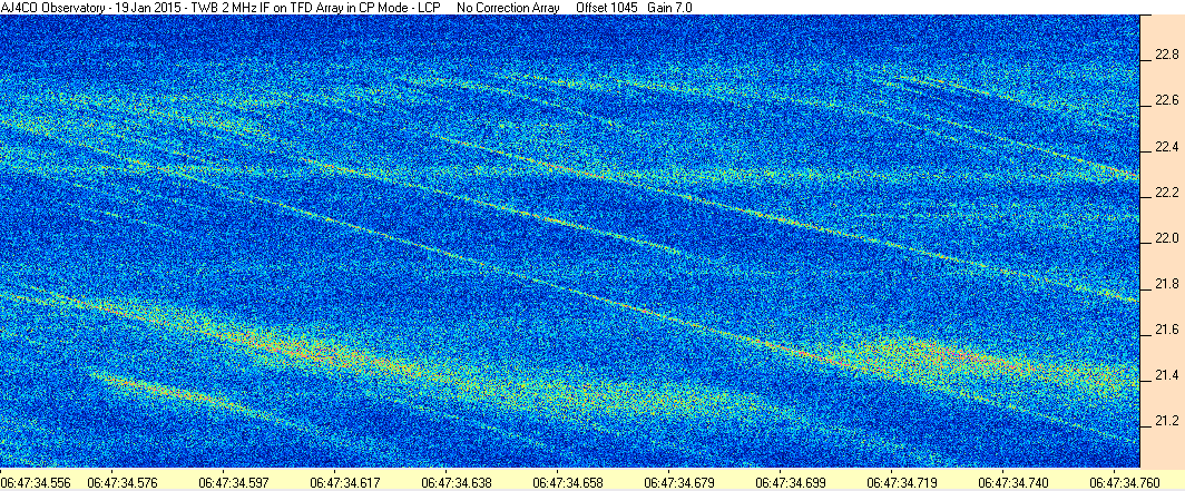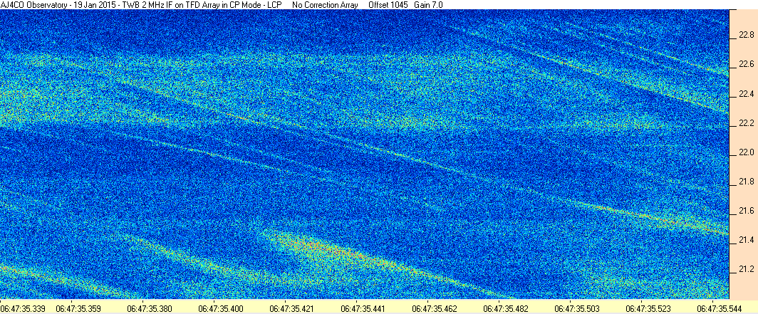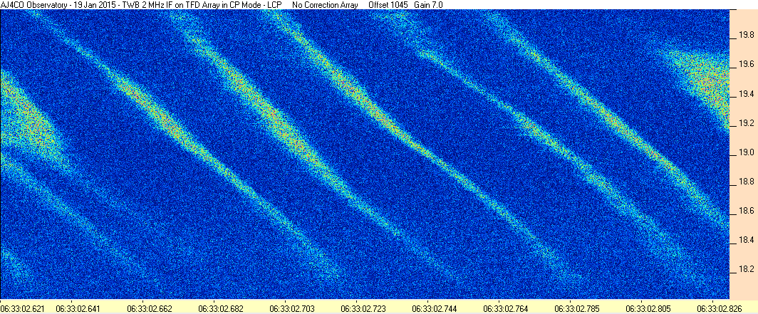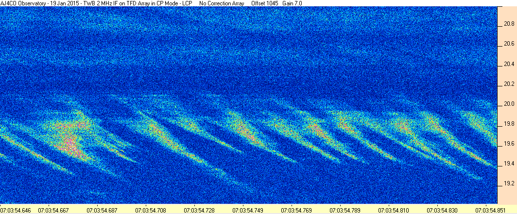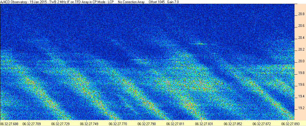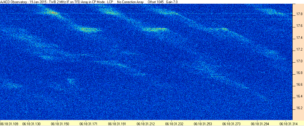 Here is the raw data from the radio telescopes along with processed data and processing output such as spectrograms and strip charts. If you use any of this material—you are free to do so—please credit Dave Typinski, AJ4CO Observatory.