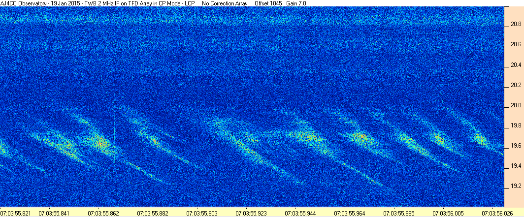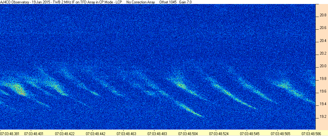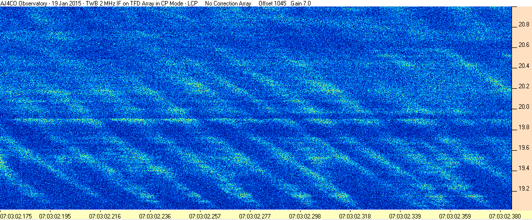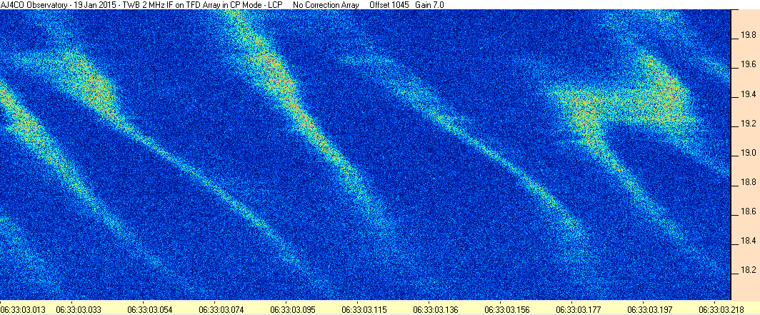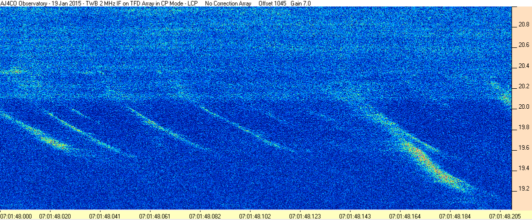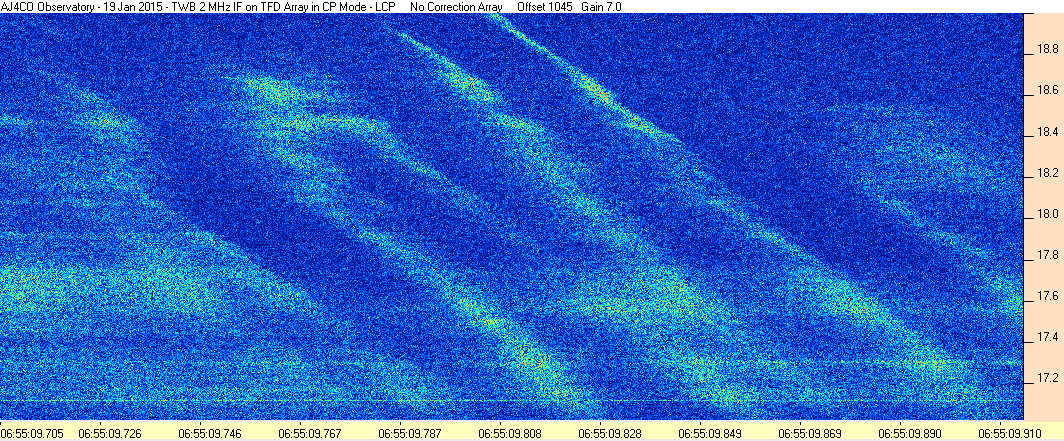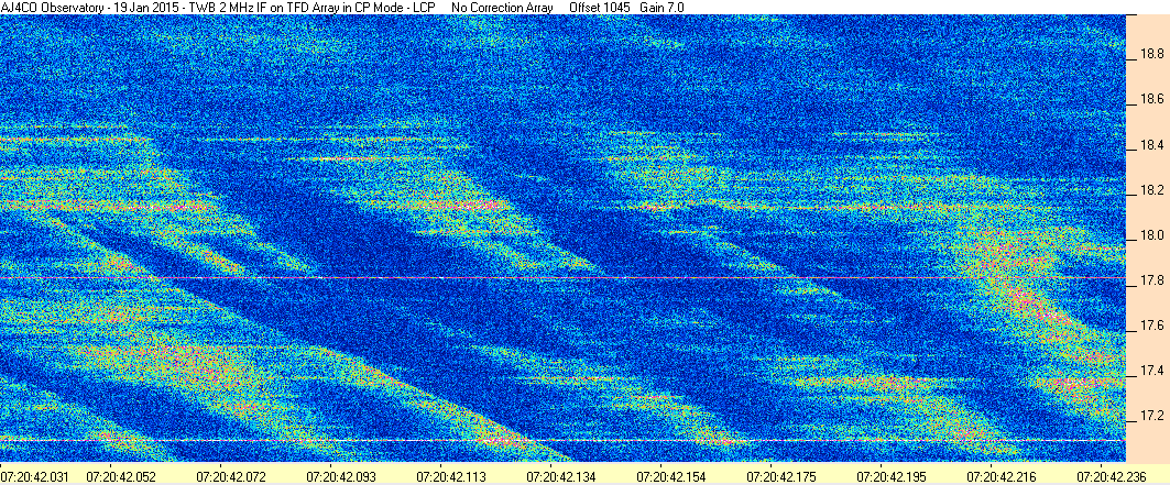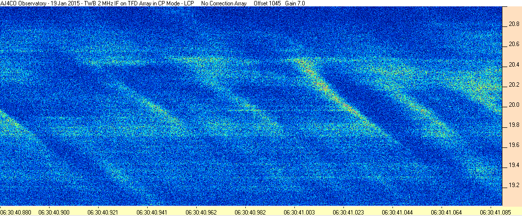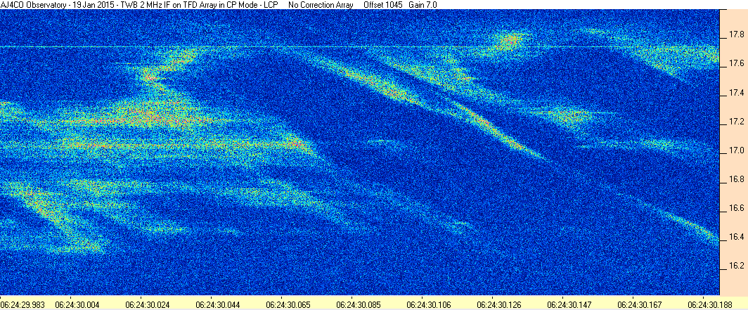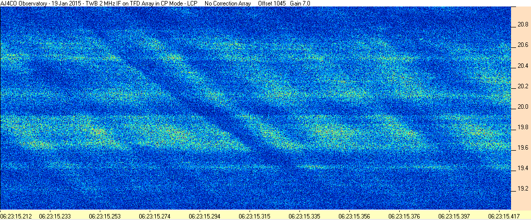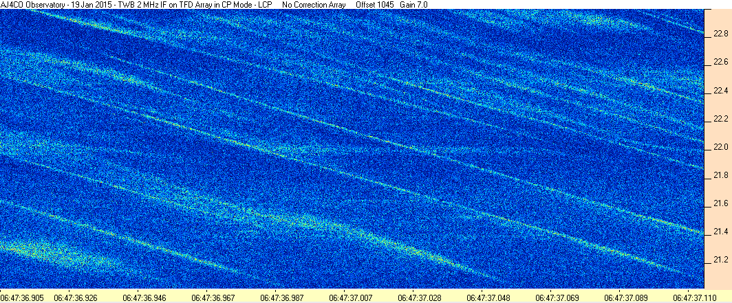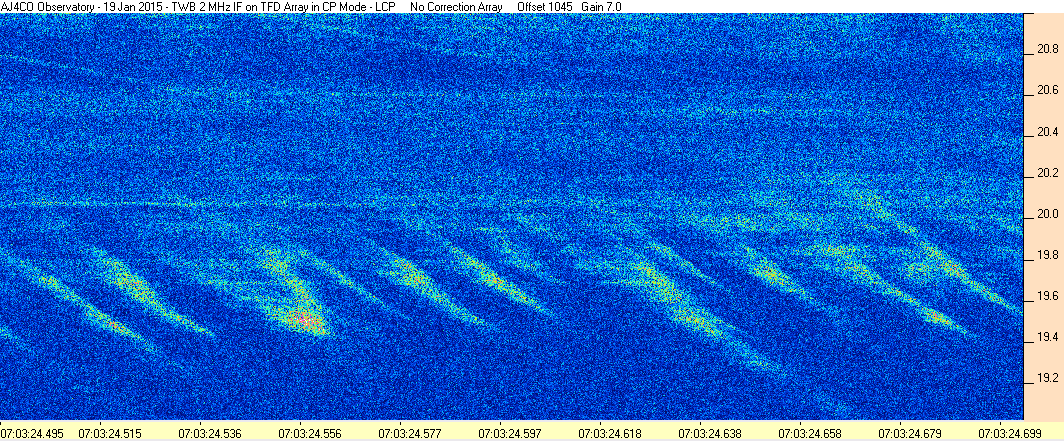 Here is the raw data from the radio telescopes along with processed data and processing output such as spectrograms and strip charts. If you use any of this material—you are free to do so—please credit Dave Typinski, AJ4CO Observatory.