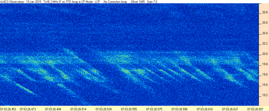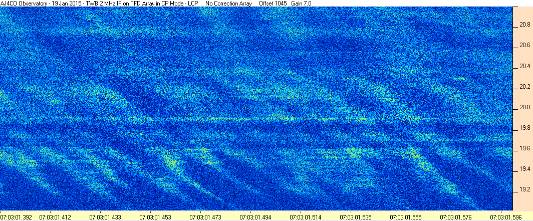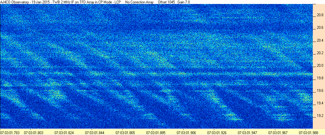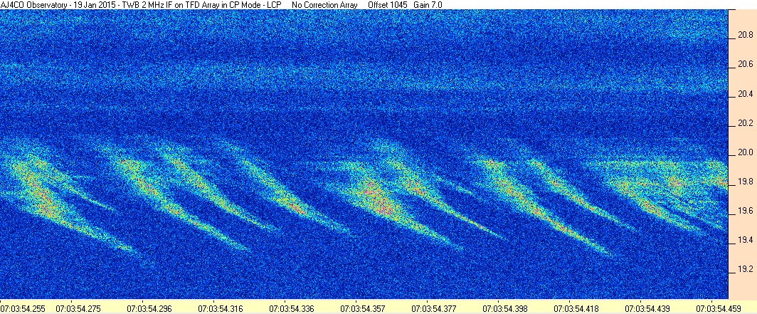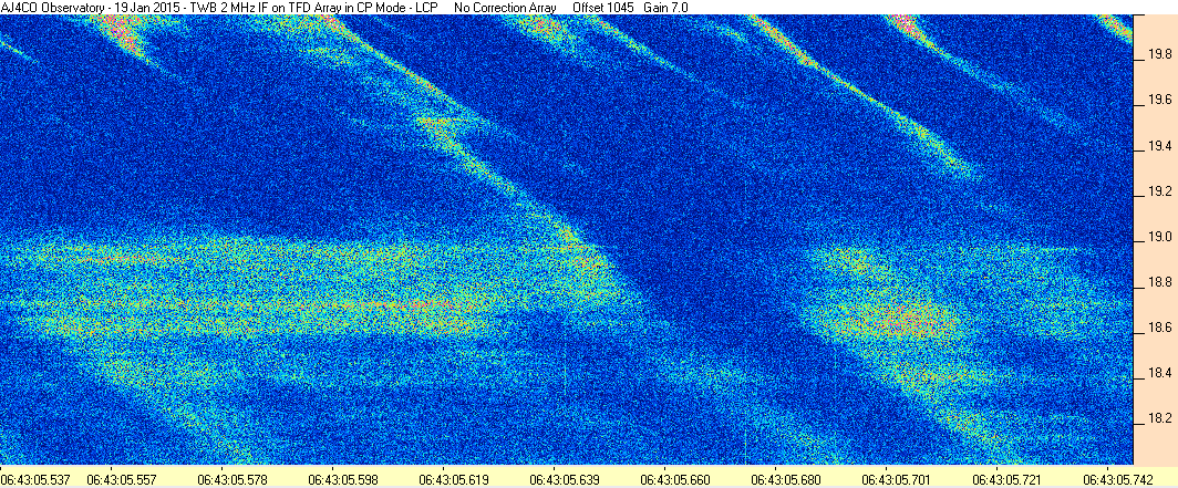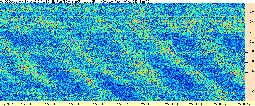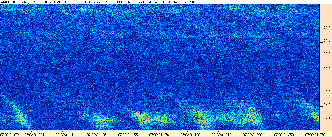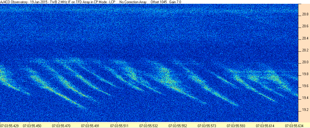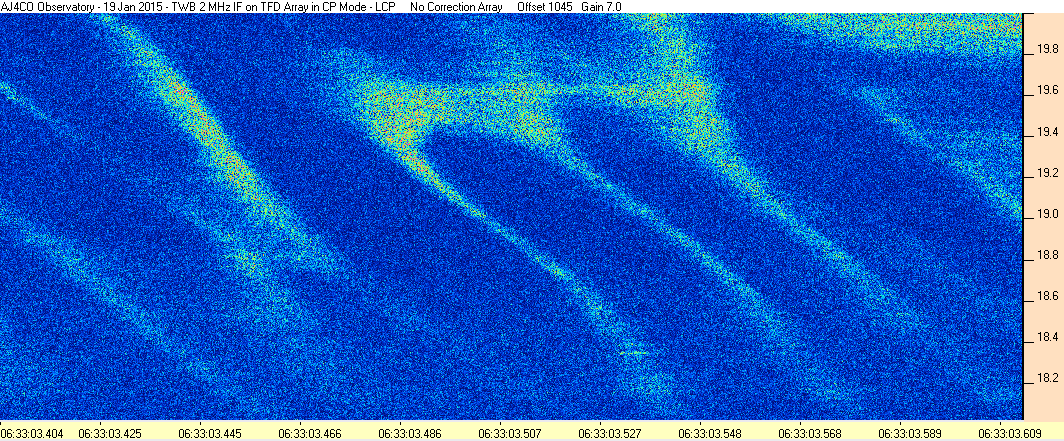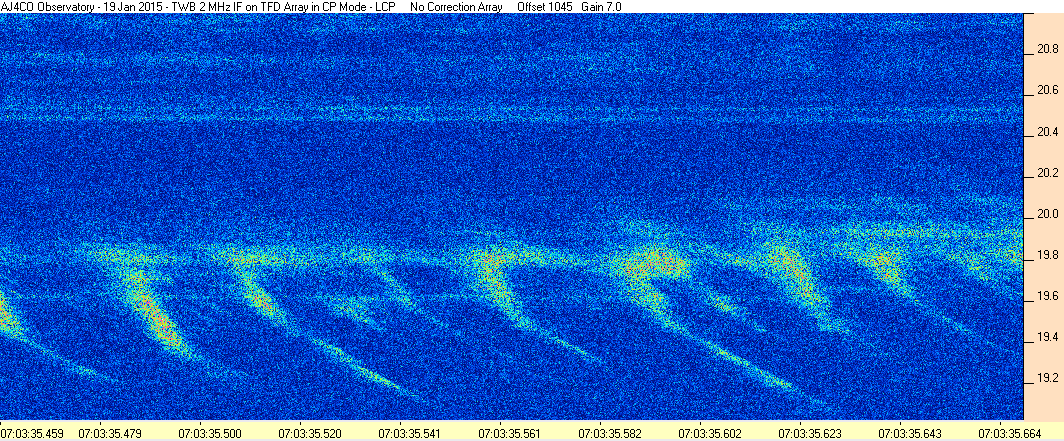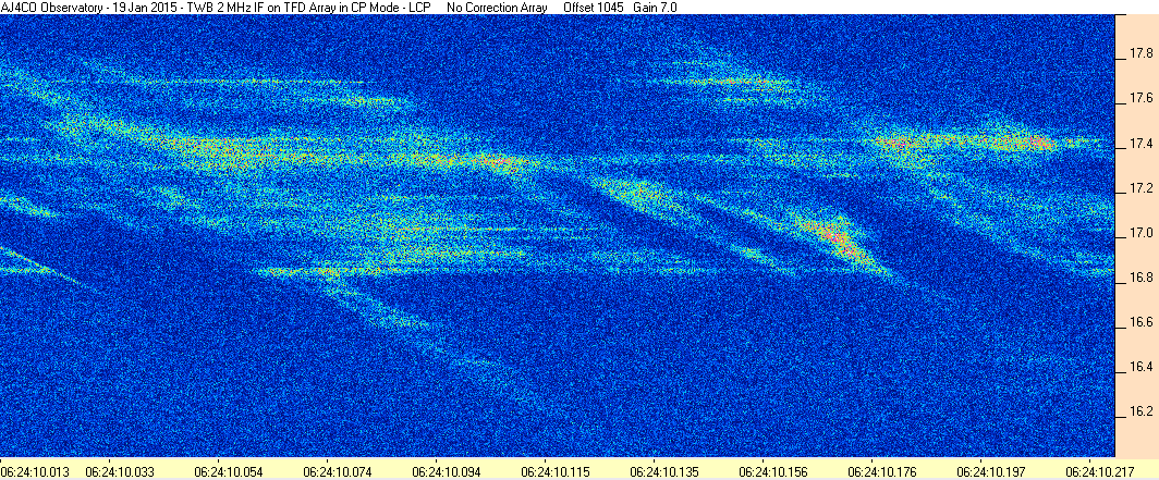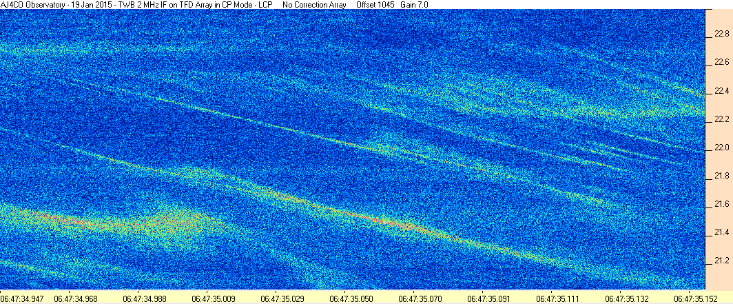 Here is the raw data from the radio telescopes along with processed data and processing output such as spectrograms and strip charts. If you use any of this material—you are free to do so—please credit Dave Typinski, AJ4CO Observatory.