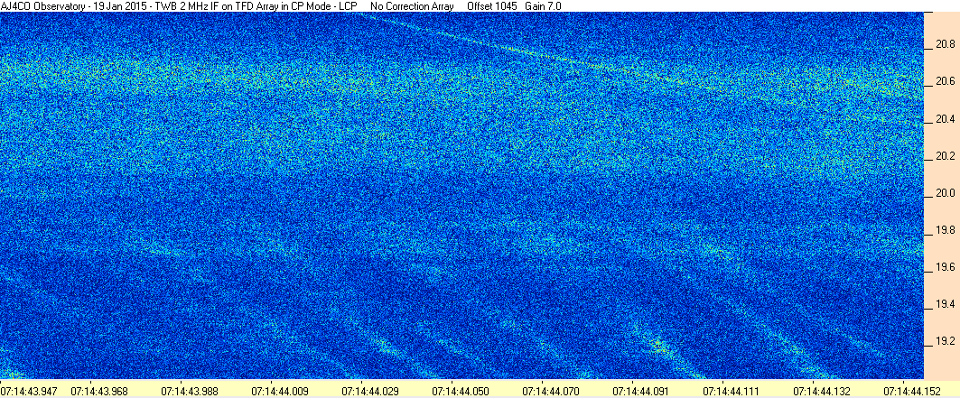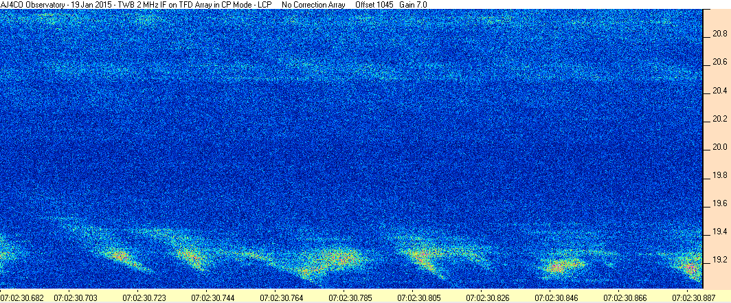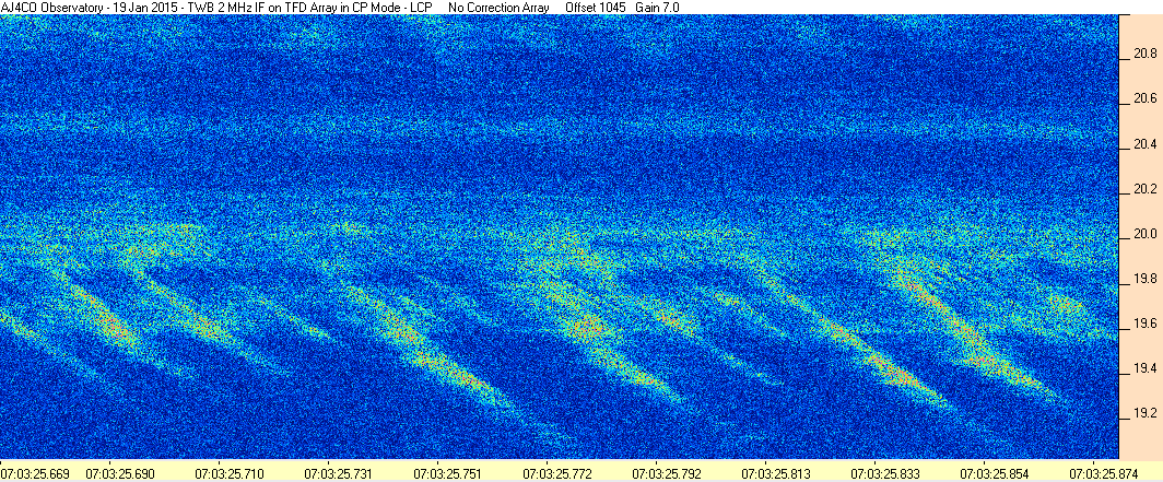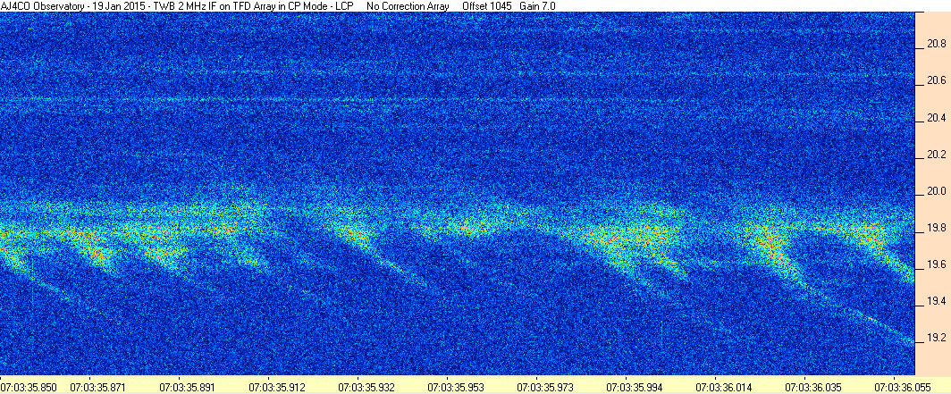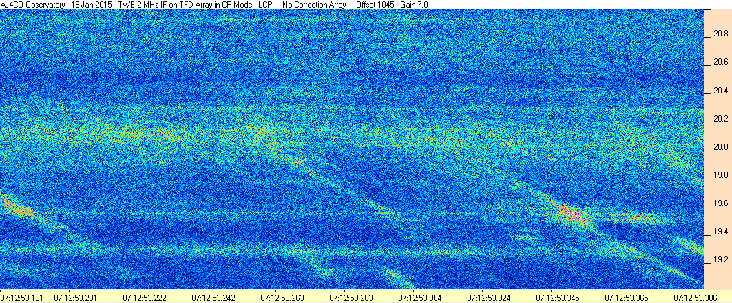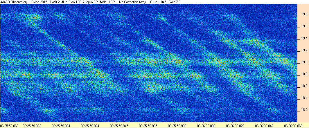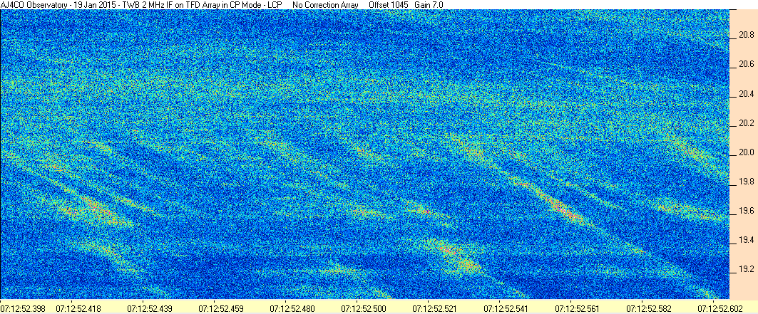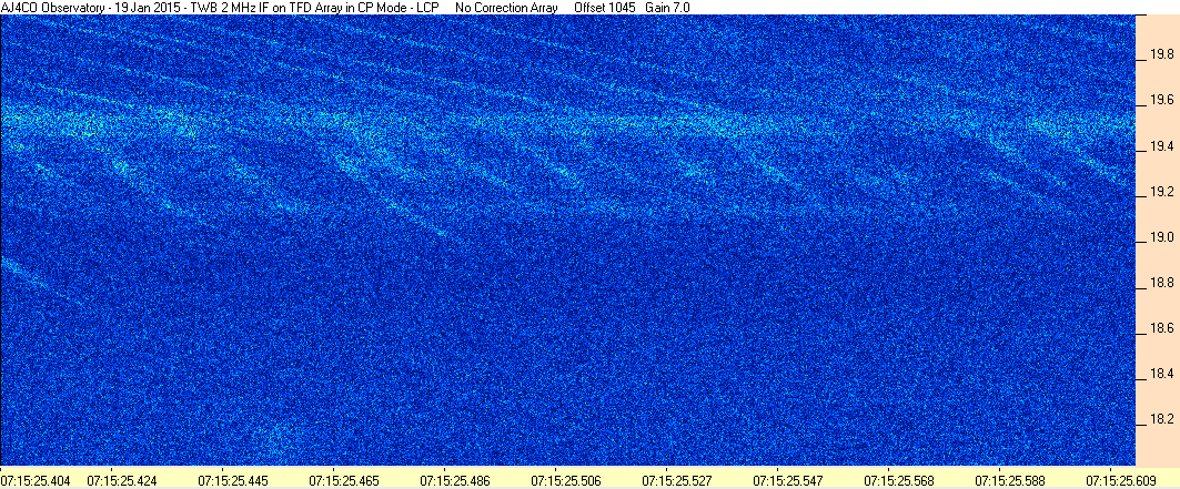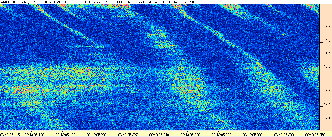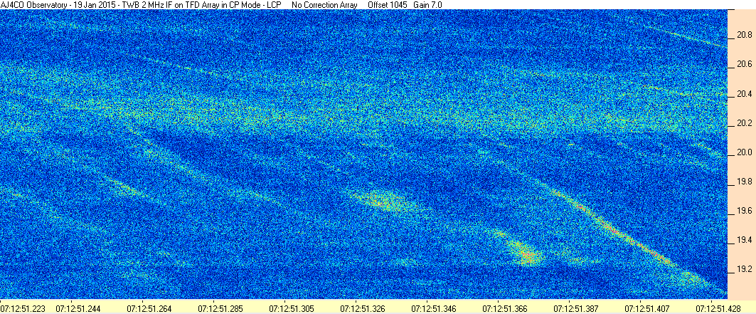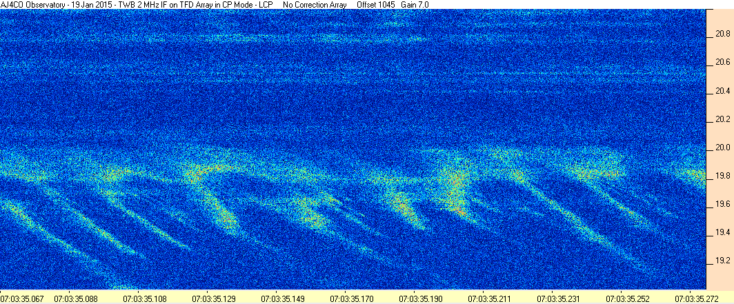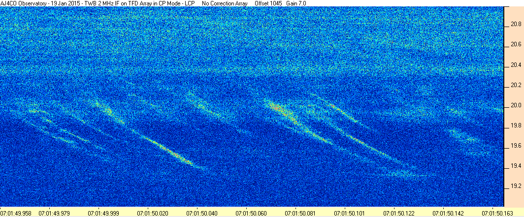 Here is the raw data from the radio telescopes along with processed data and processing output such as spectrograms and strip charts. If you use any of this material—you are free to do so—please credit Dave Typinski, AJ4CO Observatory.