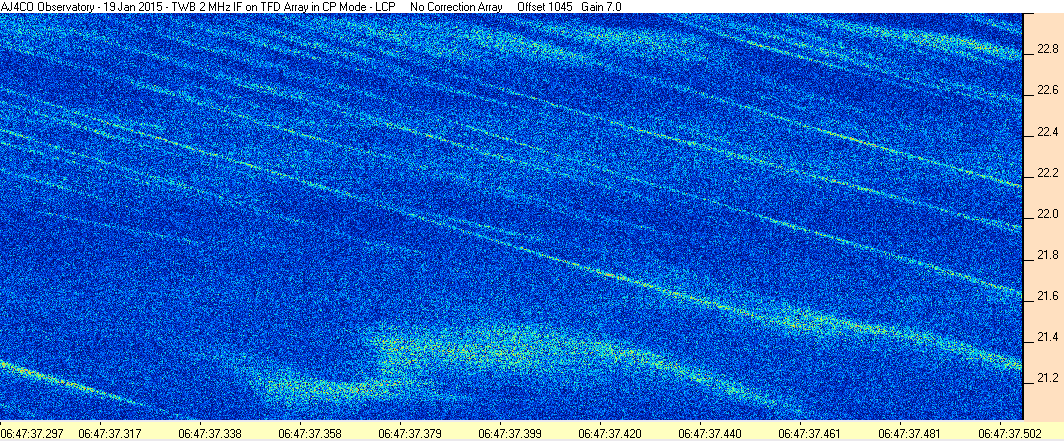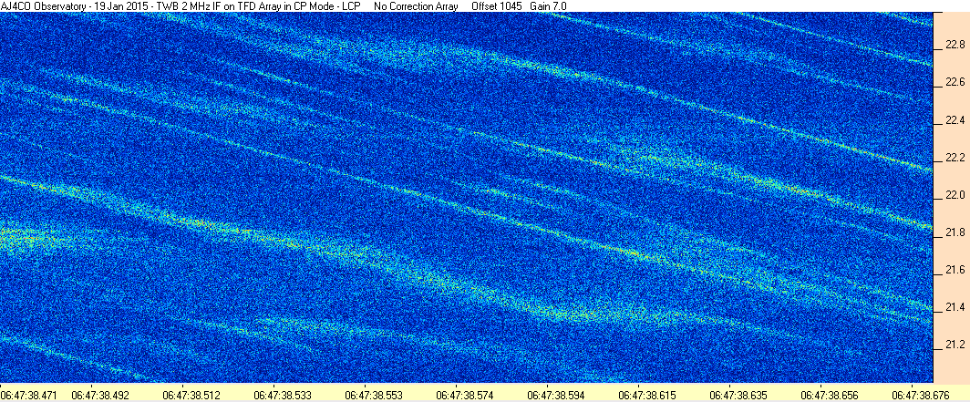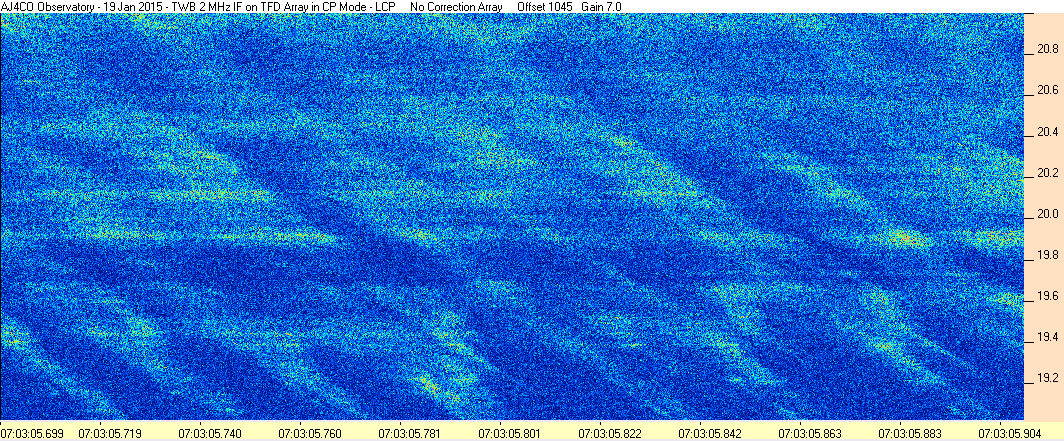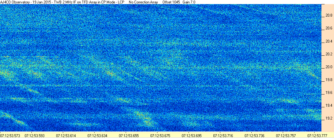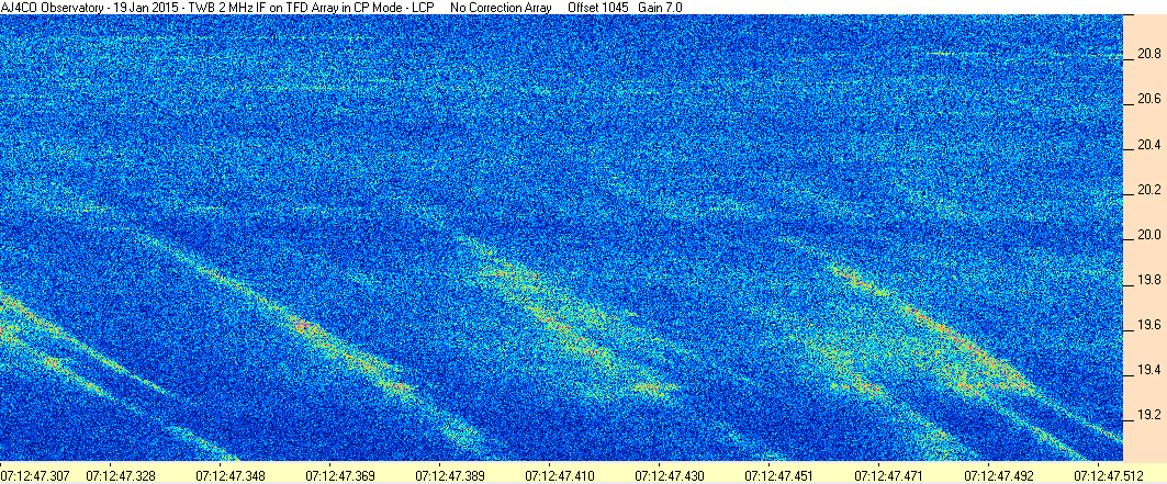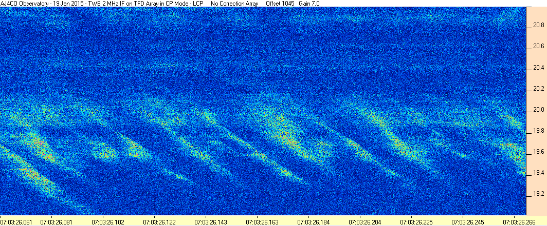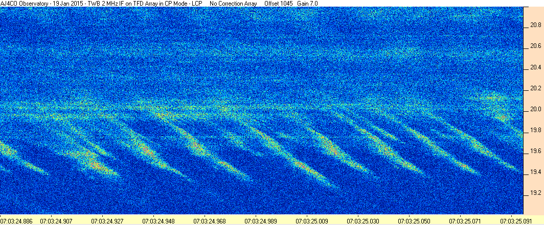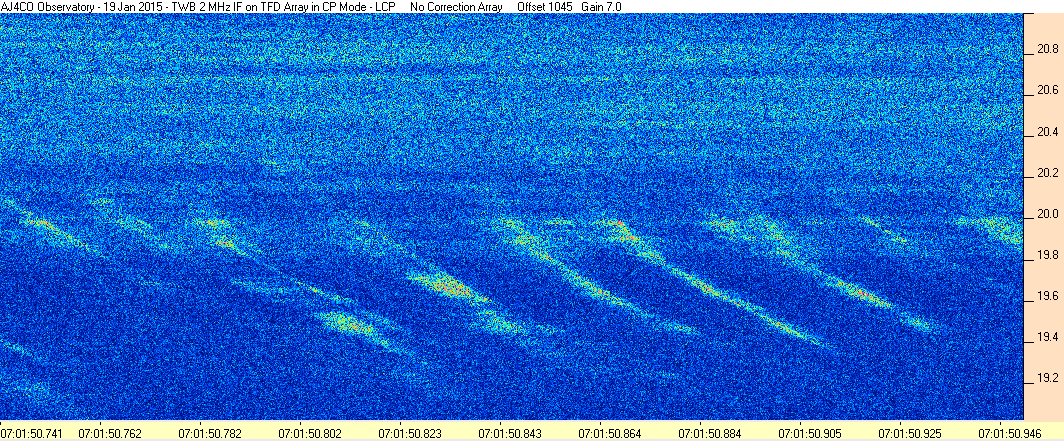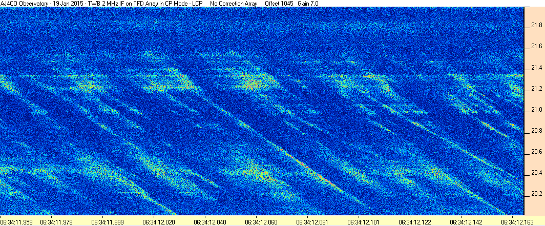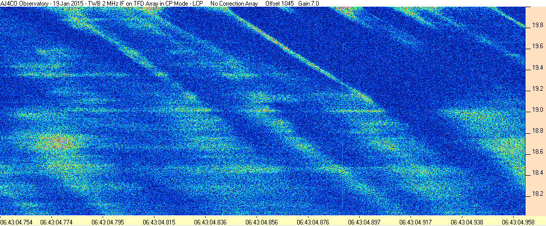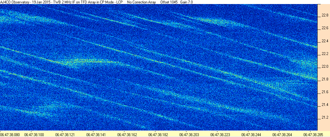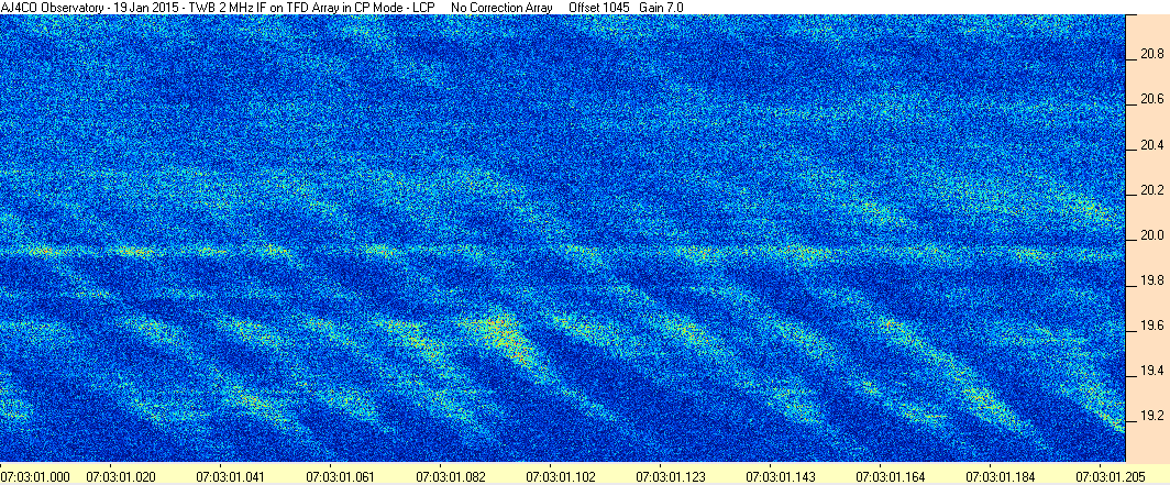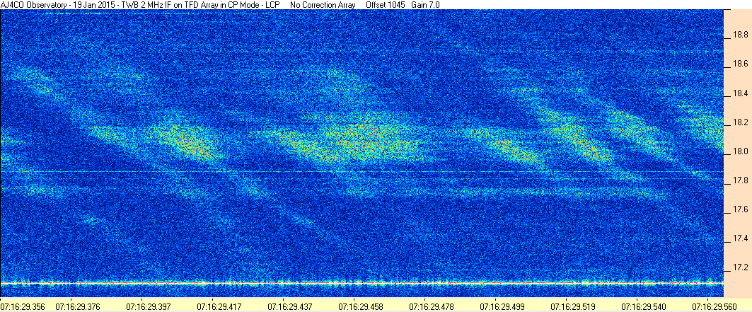 Here is the raw data from the radio telescopes along with processed data and processing output such as spectrograms and strip charts. If you use any of this material—you are free to do so—please credit Dave Typinski, AJ4CO Observatory.