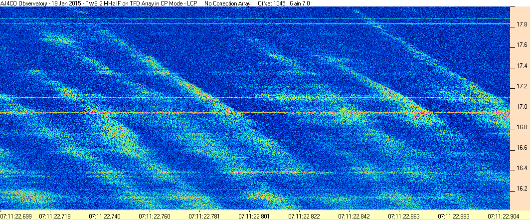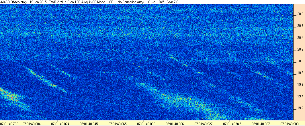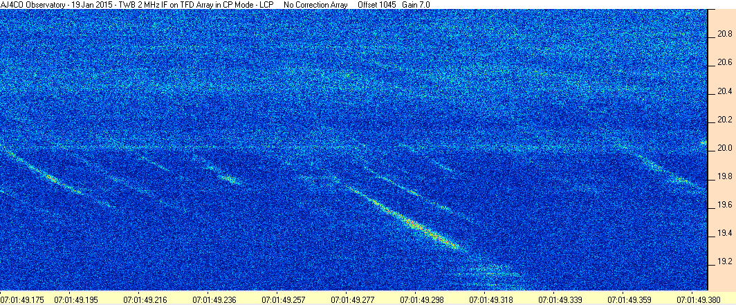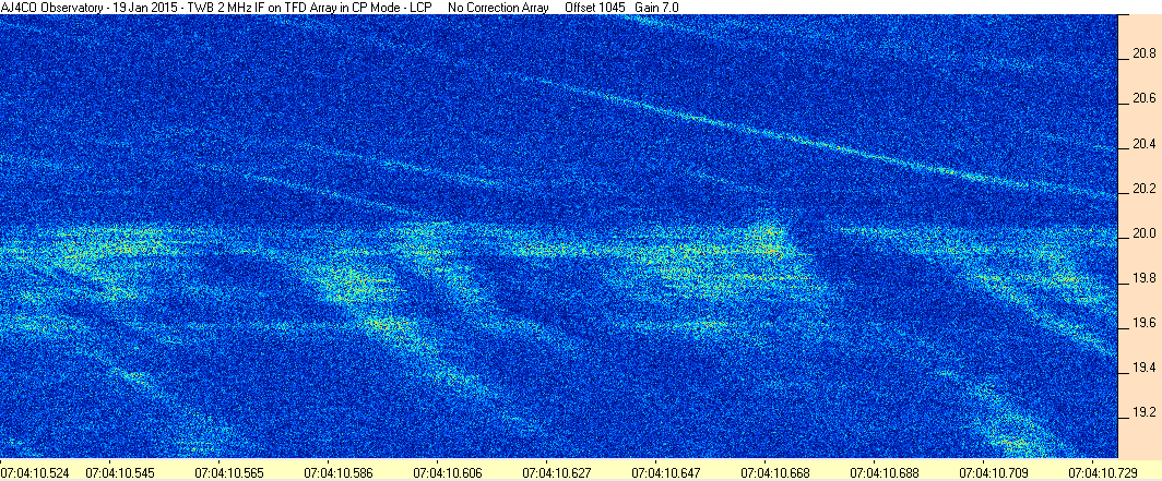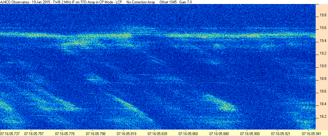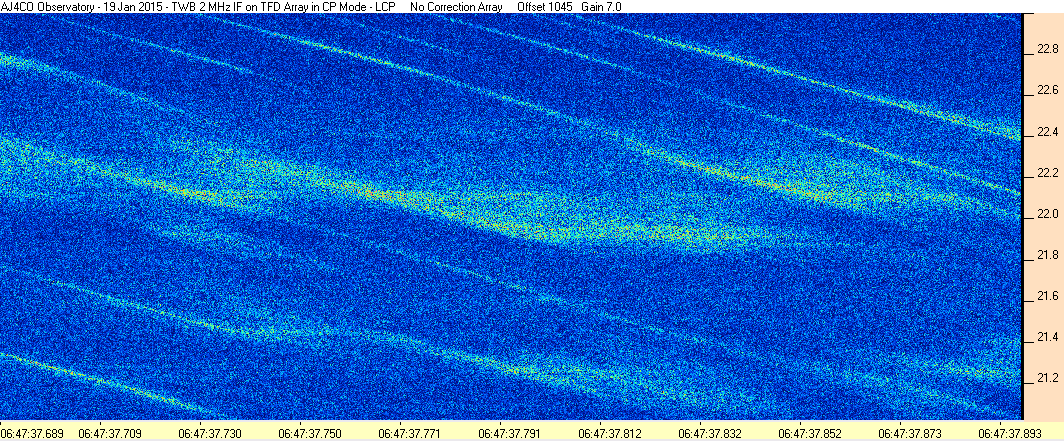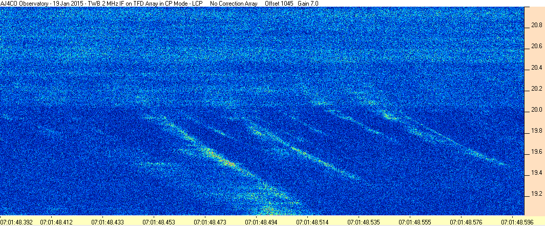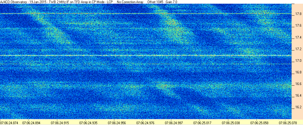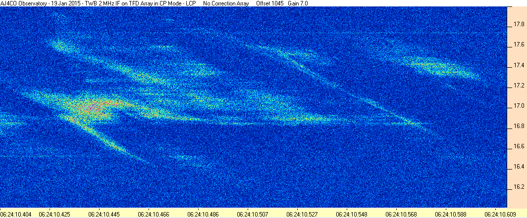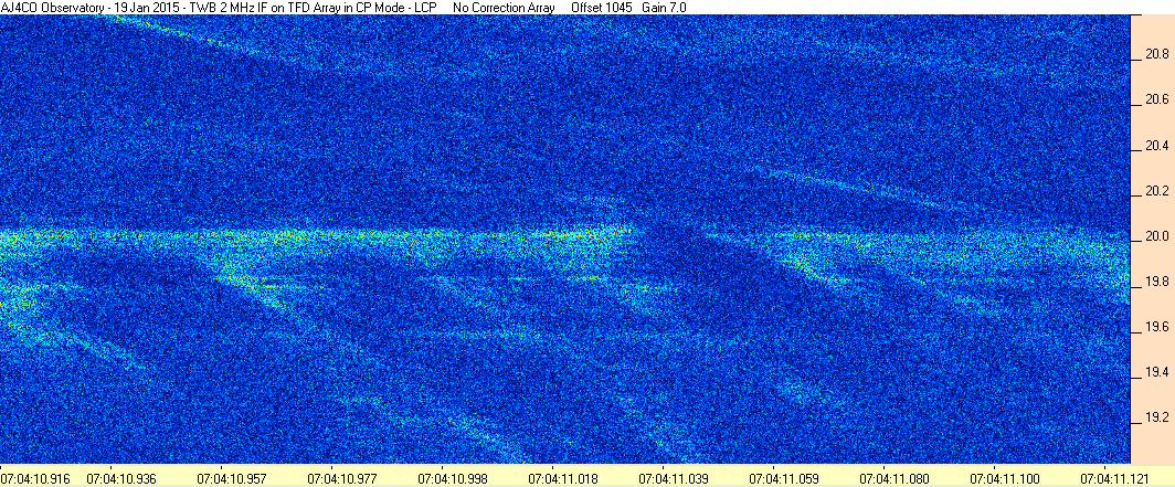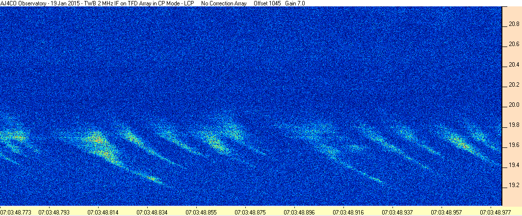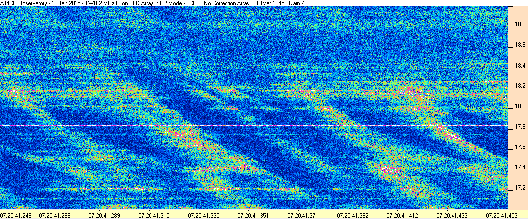 Here is the raw data from the radio telescopes along with processed data and processing output such as spectrograms and strip charts. If you use any of this material—you are free to do so—please credit Dave Typinski, AJ4CO Observatory.