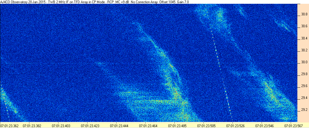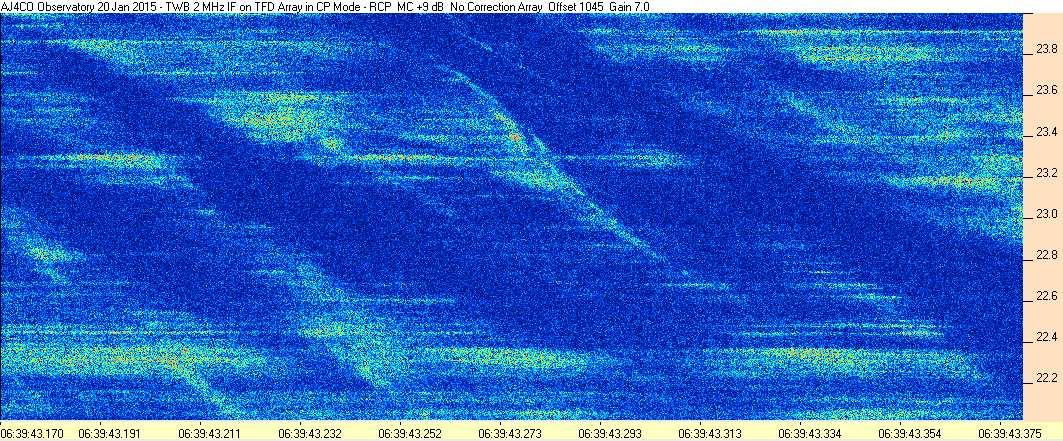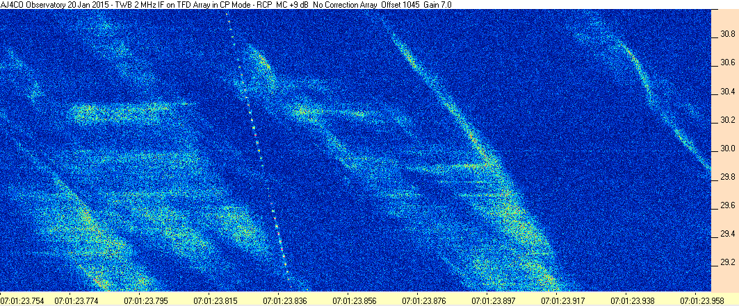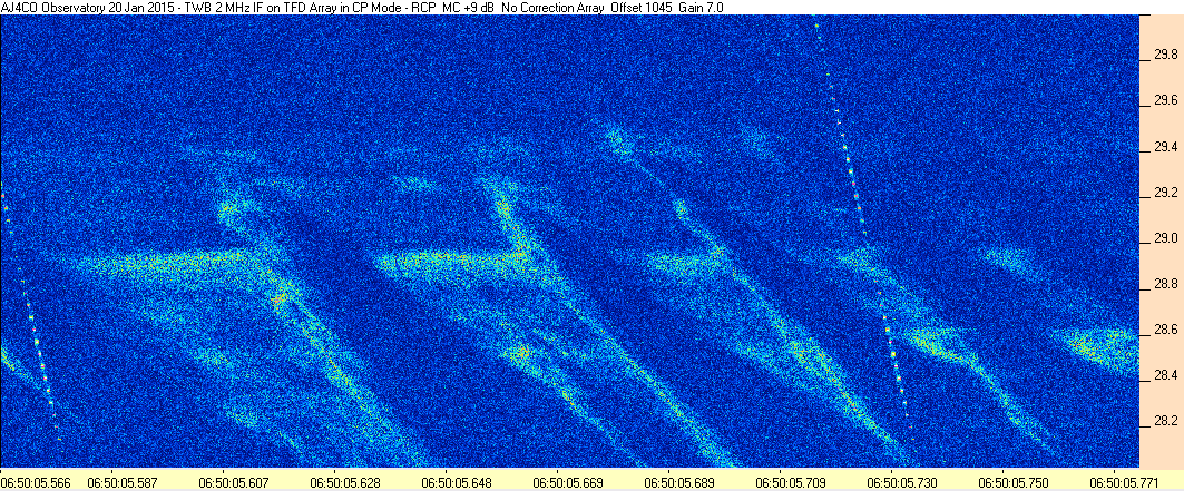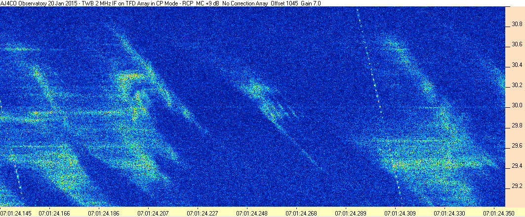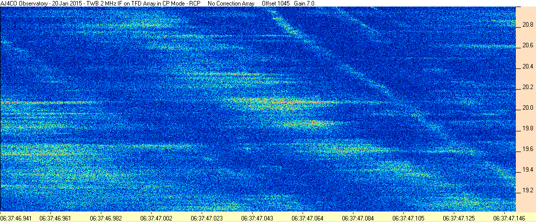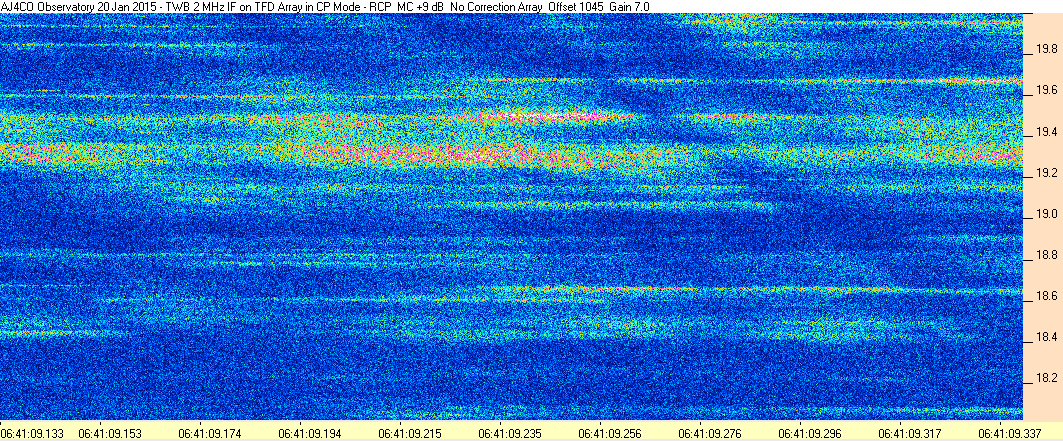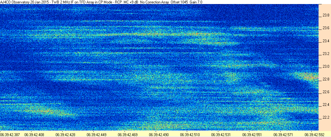 Here is the raw data from the radio telescopes along with processed data and processing output such as spectrograms and strip charts. If you use any of this material—you are free to do so—please credit Dave Typinski, AJ4CO Observatory.